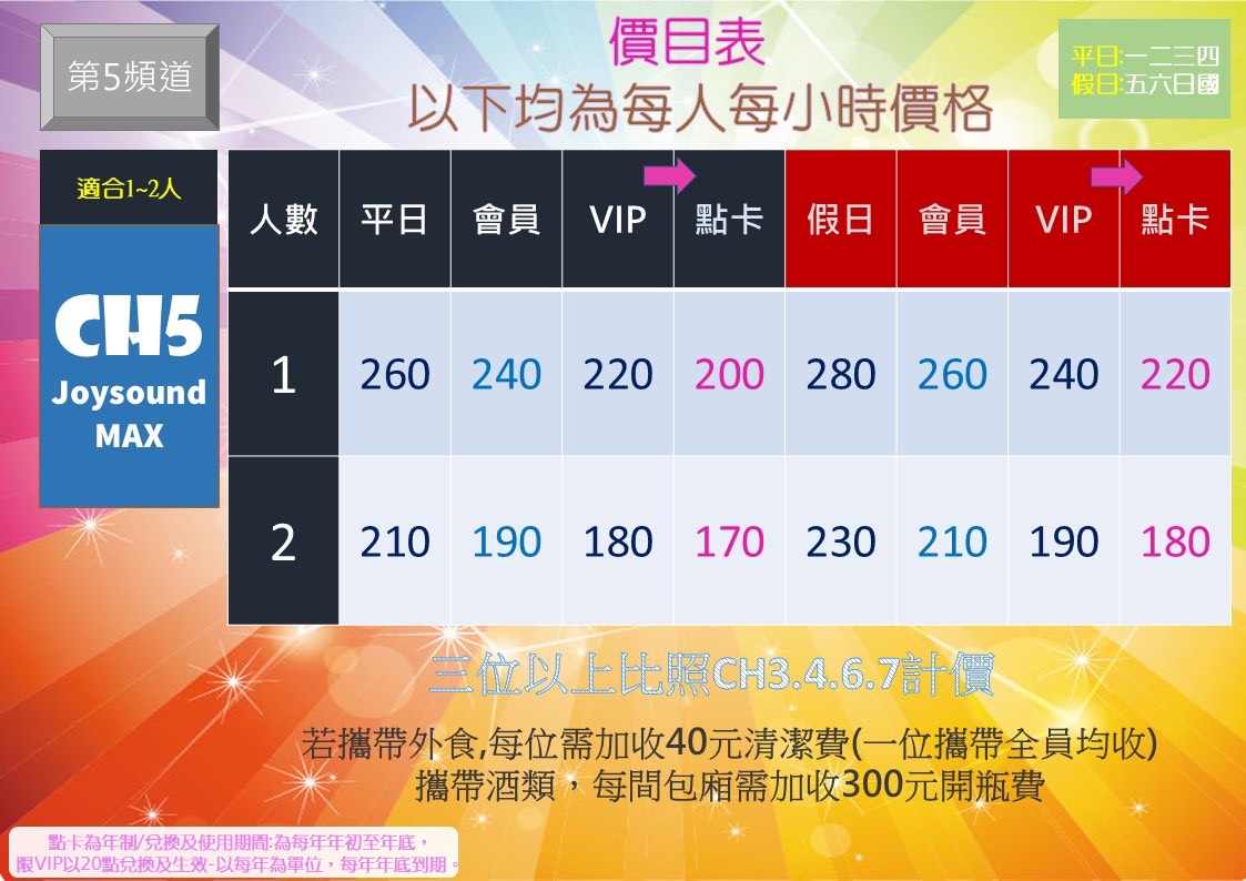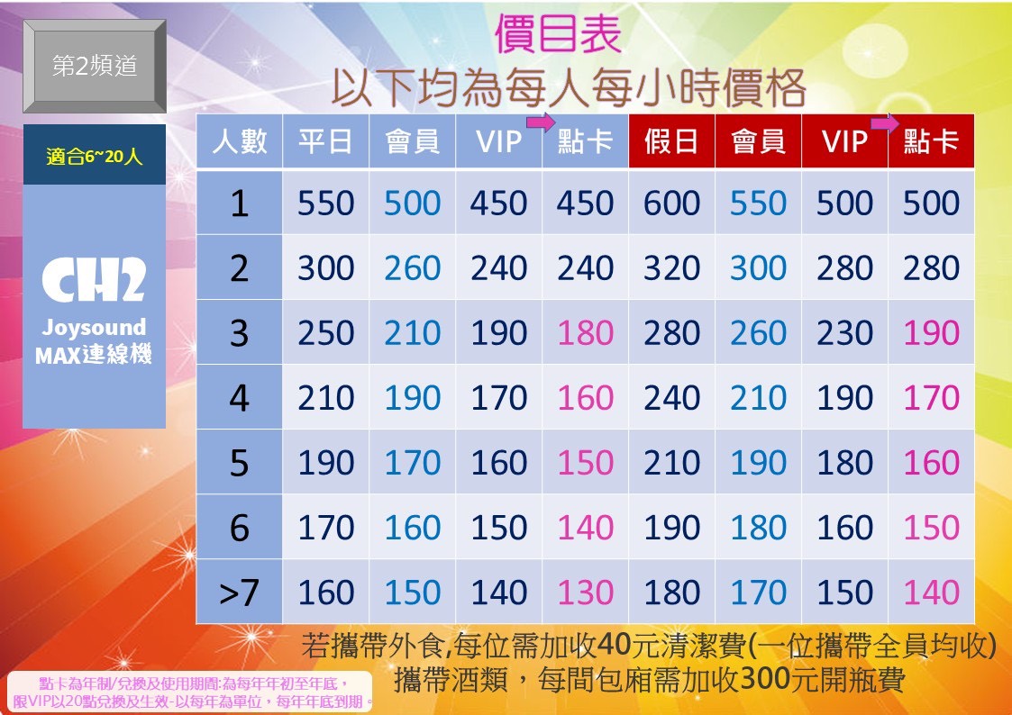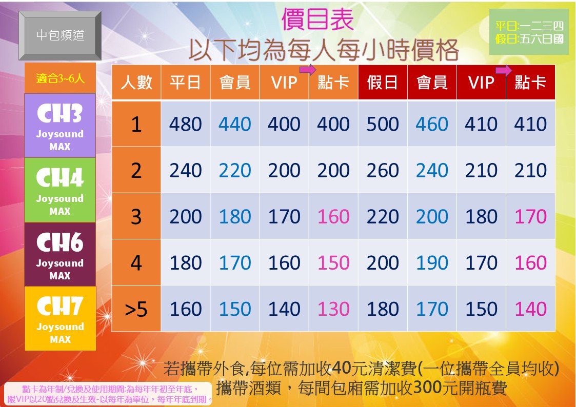 🎊當日以假日計價,每位另酌收40元服務費,歡迎各位自行攜帶外食